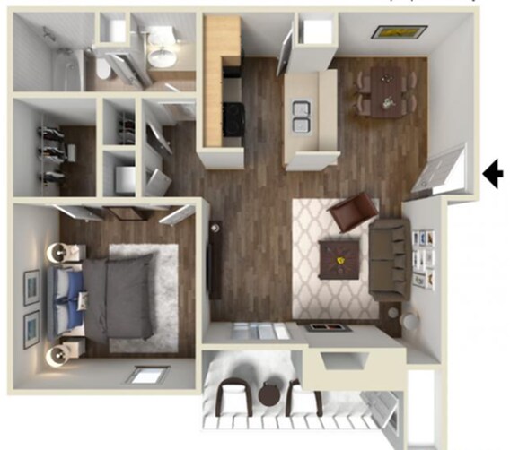 1 Bed, 1 Bath, 717 sq ftAvailable NowLargest 1 BedroomThis is the largest 1 Bedroom at this PropertyModel Gallery