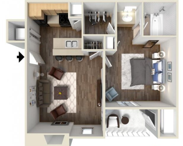 1 Bed, 1 Bath, 620 sq ftModel Gallery