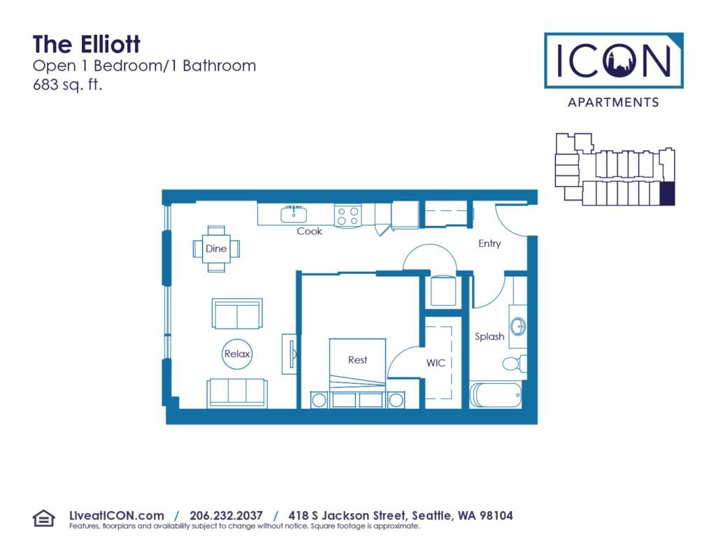Apartment Model: THE ELLIOTT MFTECall For Rates1 Bedroom, 1 Bath, 515 sq ftUnavailableTHE ELLIOTT MFTE - Floorplan 1 THE RAINIER MFTE