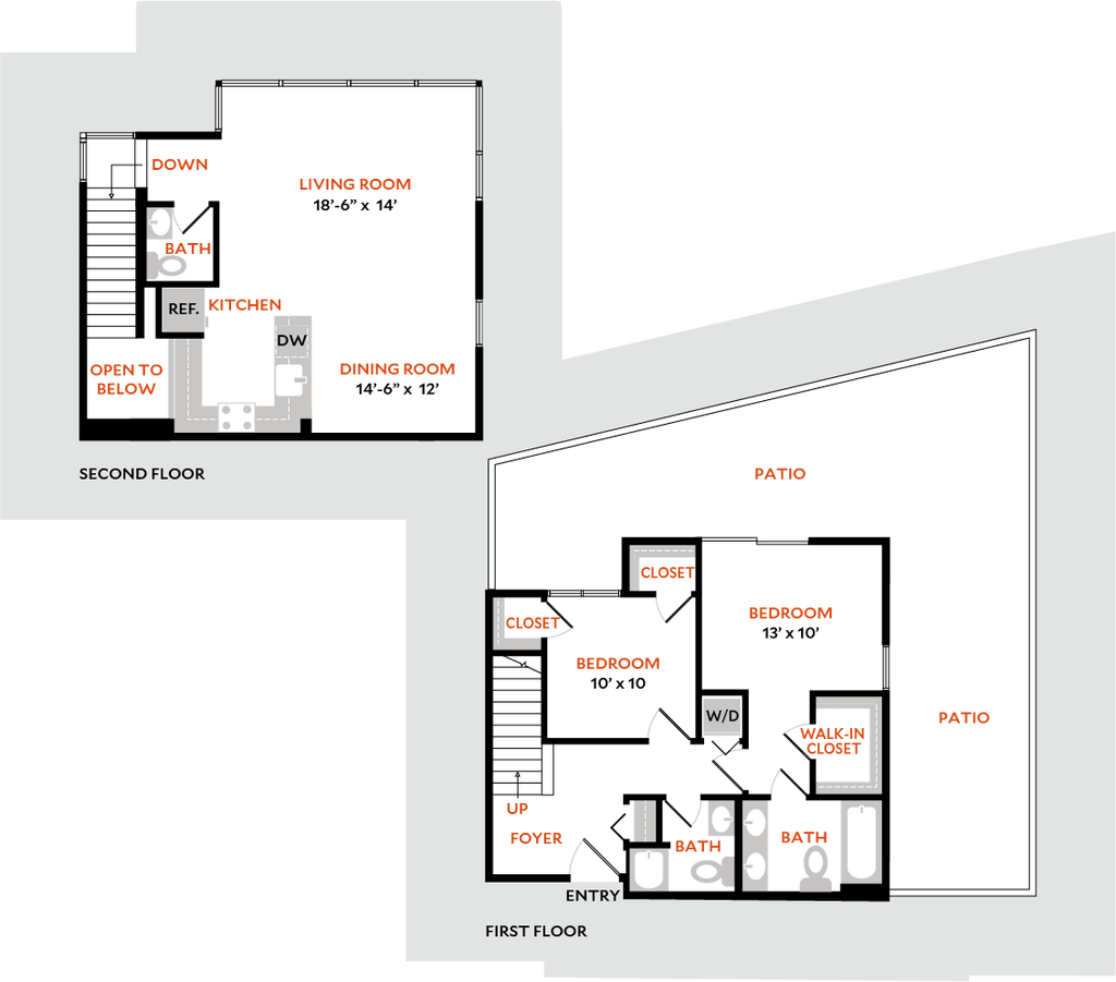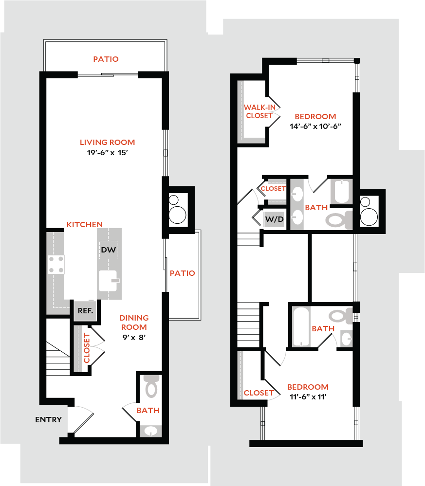 2 Beds, 2.5 Baths, 1450 sq ftLargest 2 BedroomThis is the largest 2 Bedroom at this PropertyModel Gallery