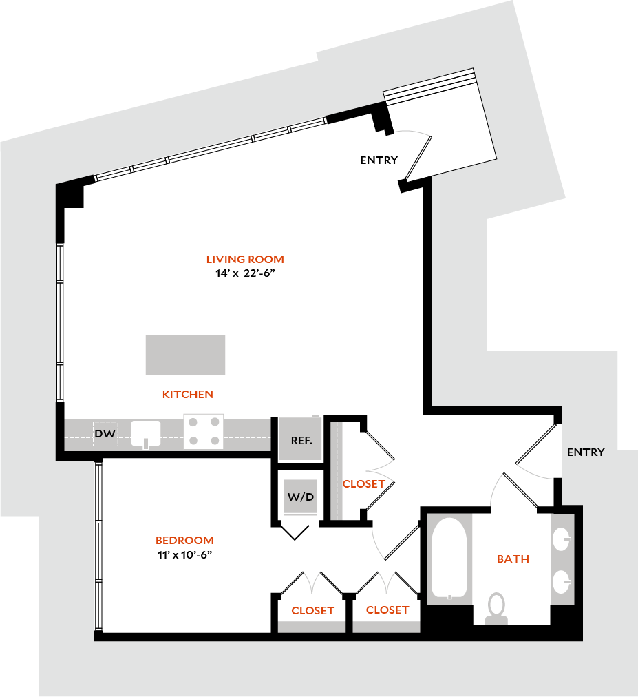 Apartment Model: Plan 1F1 Bedroom, 1 Bath, 990 sq ftUnavailable![]()