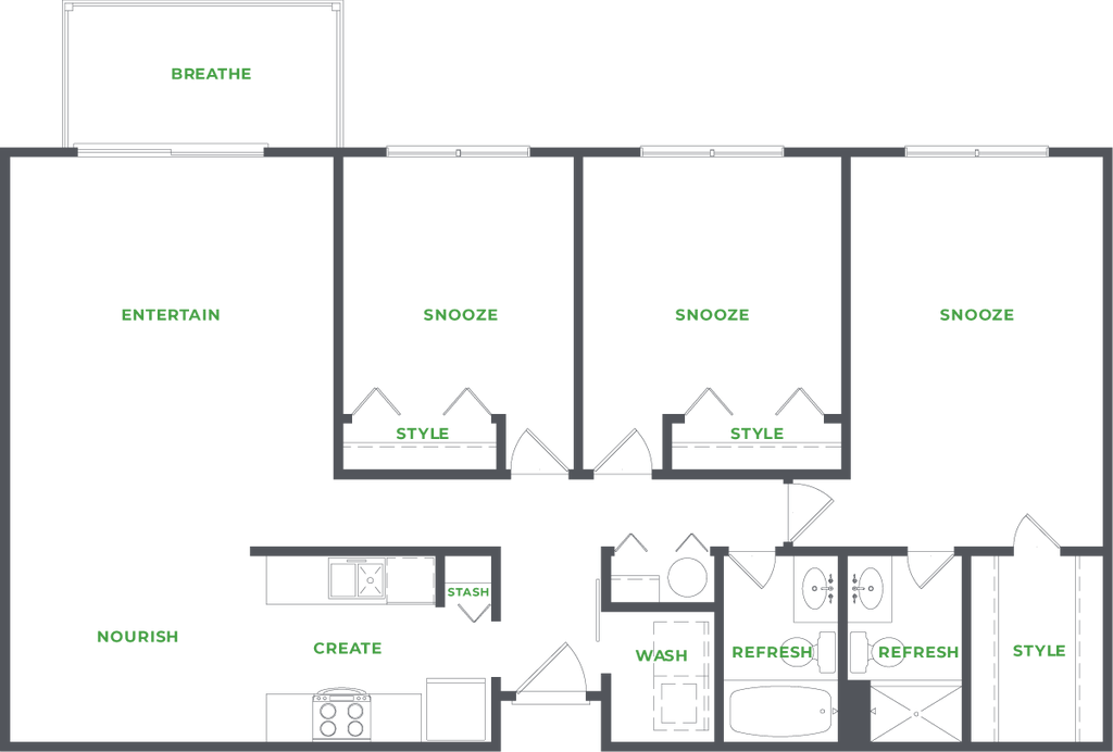Studio, 1 Bath, 638-644 sq ftAvailable NowModel Gallery