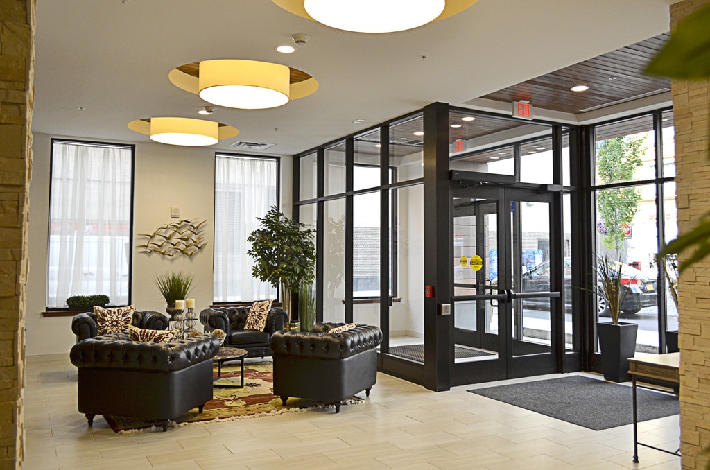 - Secured lobby with coffee station