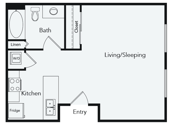 Apartment Model: S3Call For RatesStudio, 1 Bath, 455 sq ftUnavailableS3 - Floorplan 1 1 Bedroom