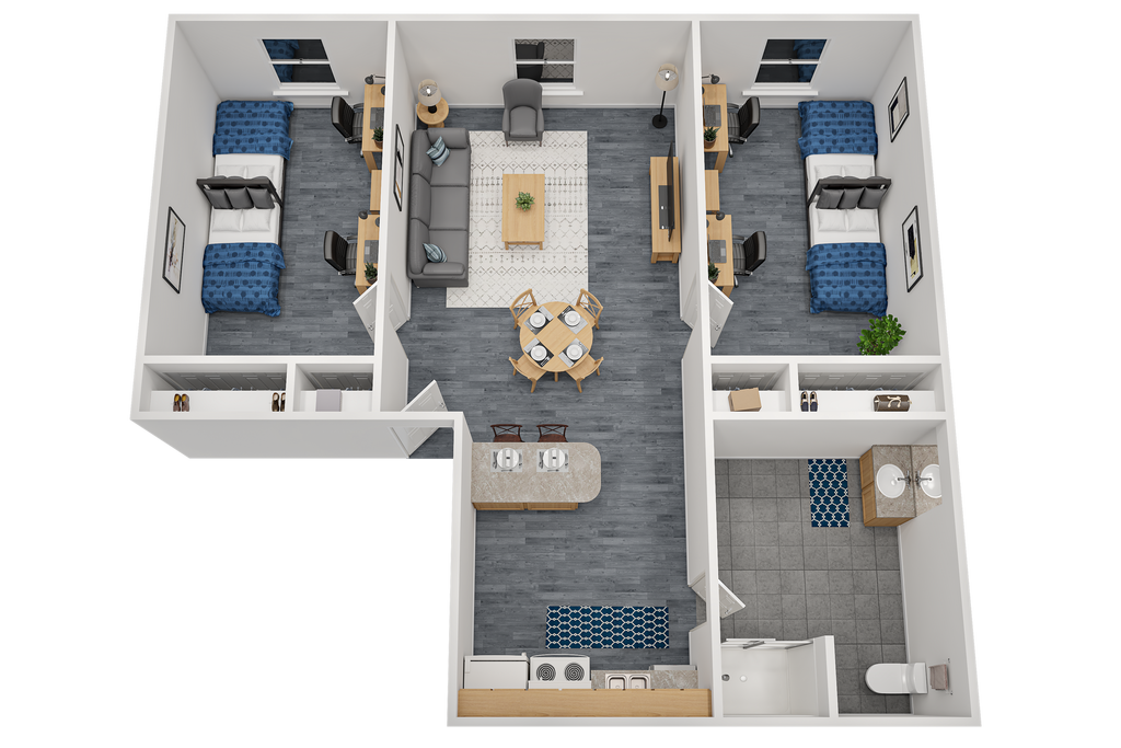 D1 Private - Floorplan 1 Apartment Unit: PrivateApartment Model: D1 Private4 Bedroom, 2 Bath, 860 sq ftAvailable August 21, 2026Four Bedroom, Two Bathroom