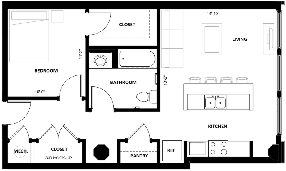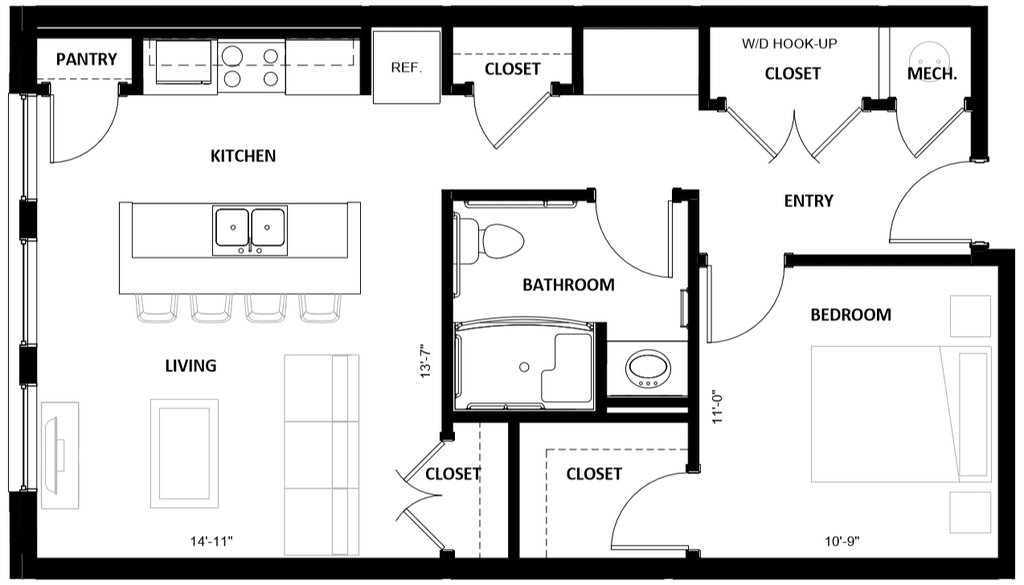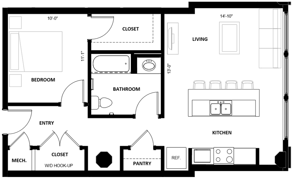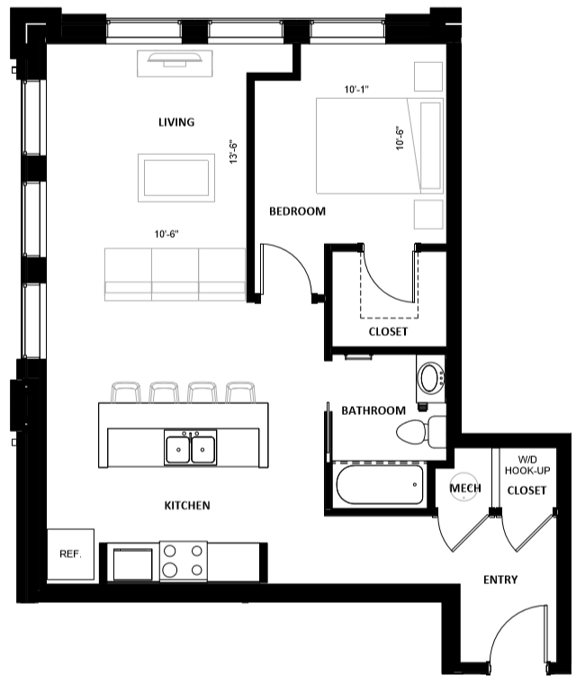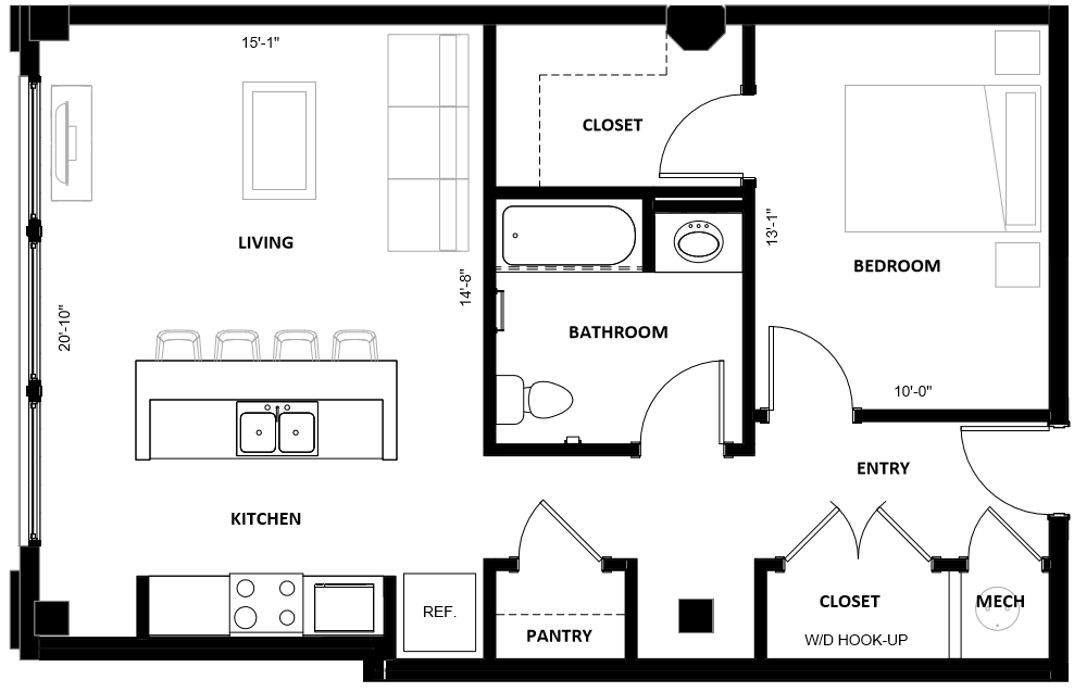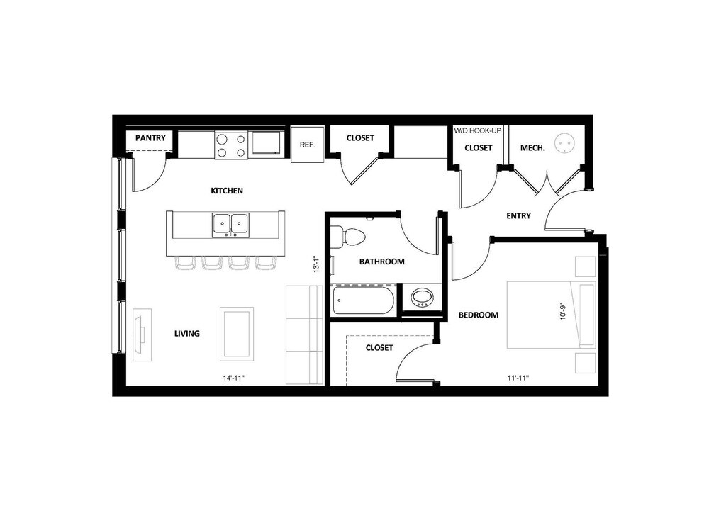 1BR 6.2 60% - Floorplan 1 1BR 4.2 40%