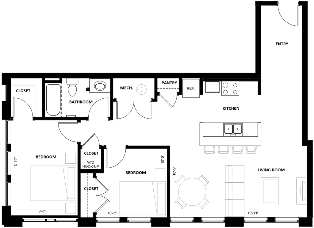 2 Beds, 1 Bath, 884 sq ftModel Gallery