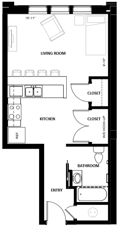 Studio, 1 Bath, 529 sq ftLargest StudioThis is the largest Studio at this PropertyModel Gallery