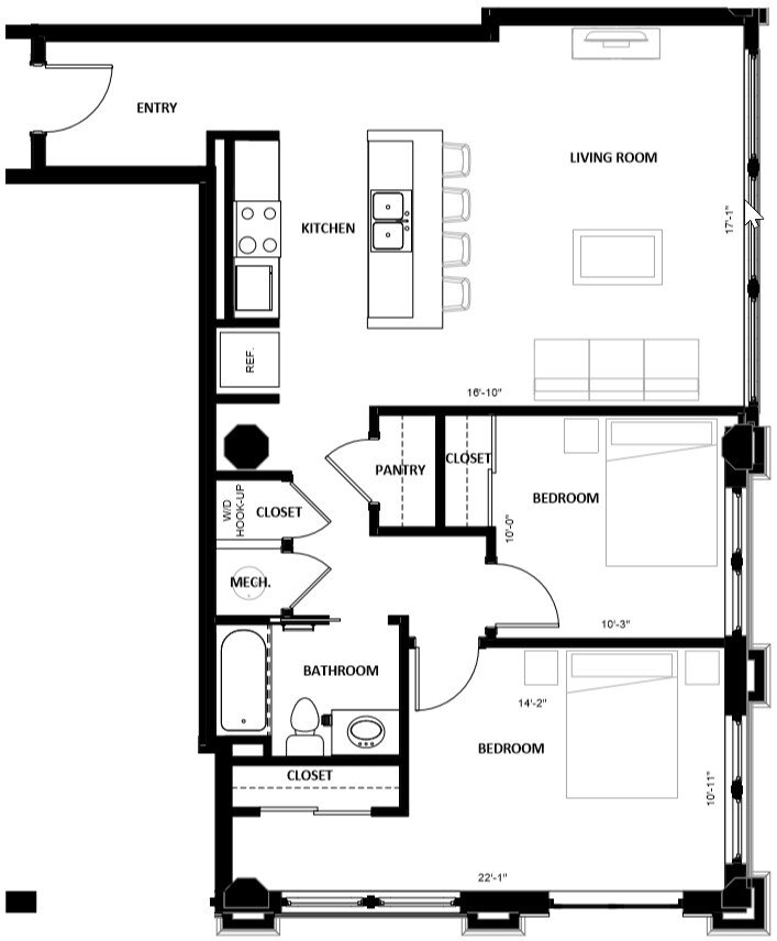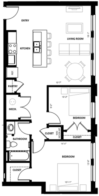 1BR 6.1 50% - Floorplan 1 2 Bedrooms