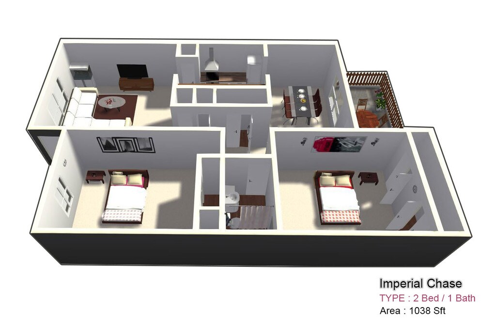 2 Beds, 1 Bath, 1038 sq ftModel Gallery
