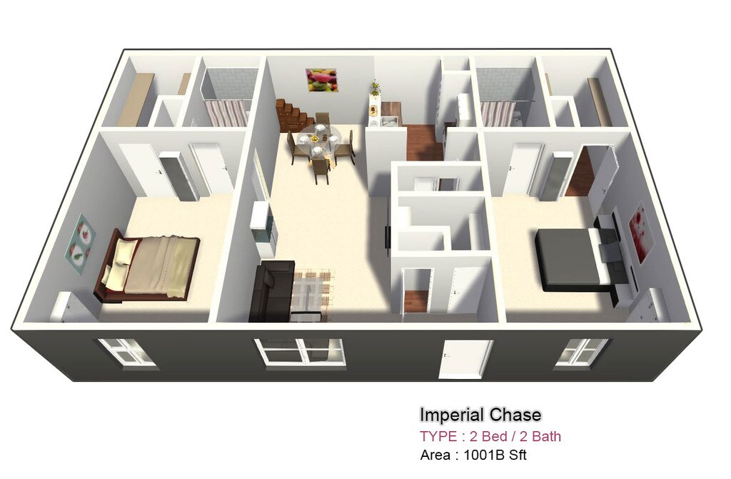 2 Beds, 2 Baths, 1001 sq ftModel Gallery