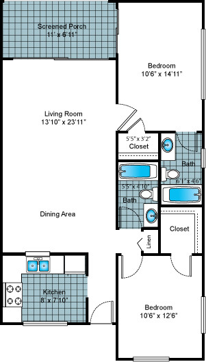 2 Beds, 2 Baths, 1070 sq ftAvailable NowModel Gallery