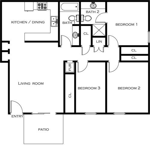 3 Bed 2 Bath - Floorplan 1 3 Bed 2 Bath