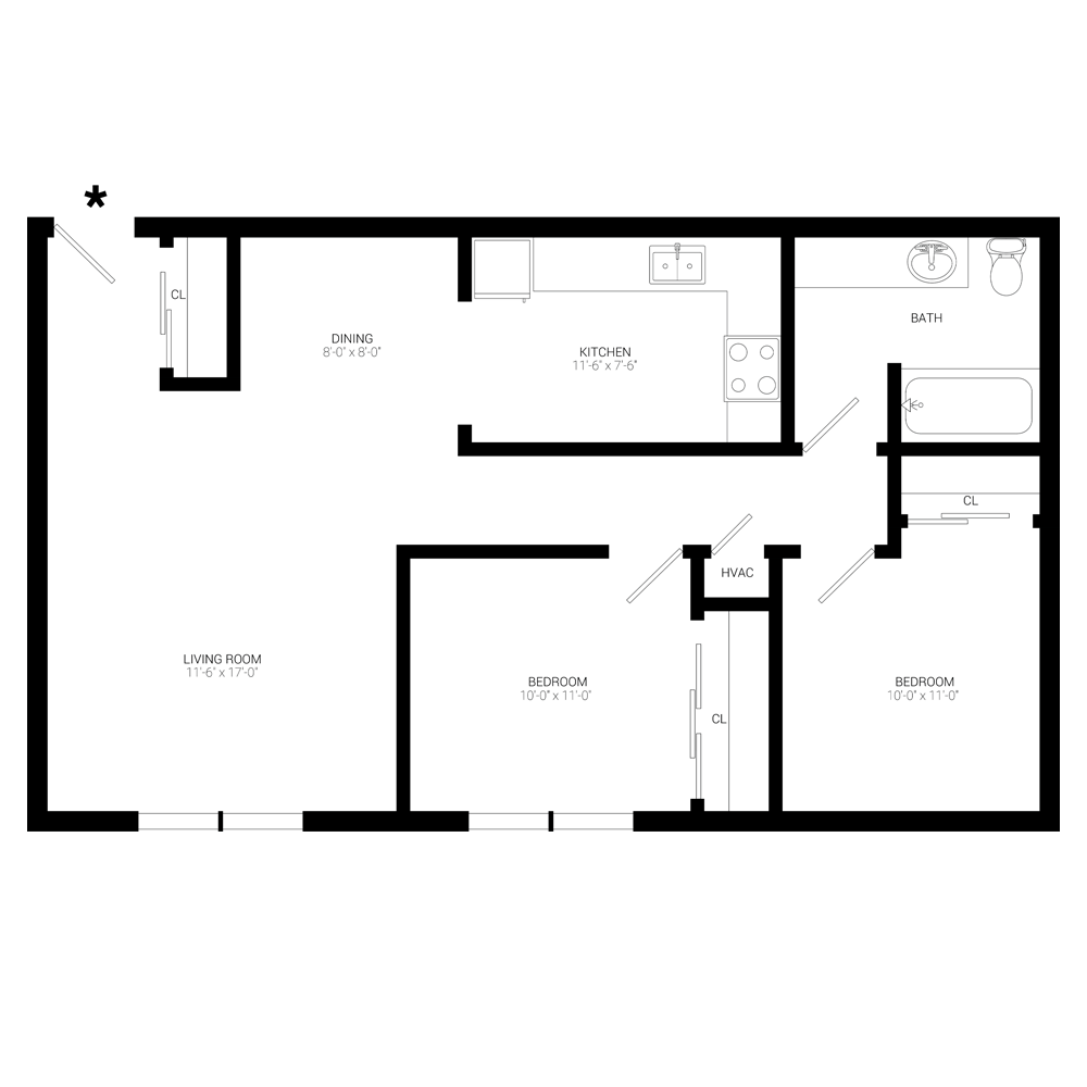 The Genessee - Floorplan 1 Apartment Unit: 825A05Apartment Model: The Genessee$1,3102 Bedroom, 1 Bath, 790 sq ftAvailable December 10, 2025The Baldwin