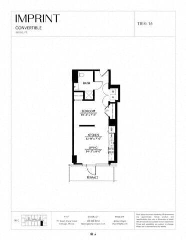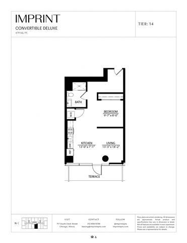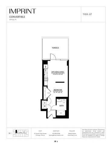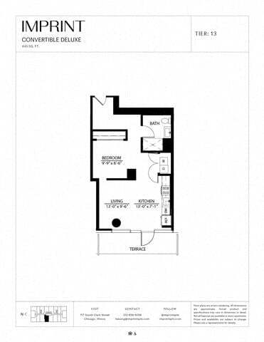 Convertible Terrace G - Floorplan 1 Apartment Unit: 0602Apartment Model: Convertible Terrace G$2,067Studio, 1 Bath, 553 sq ftAvailable NowConvertible HC