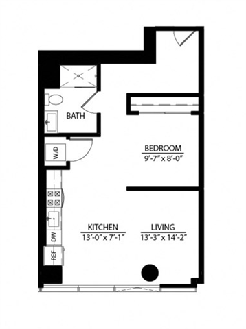 Apartment Model: Loft Studio BCall For RatesStudio, 1 Bath, 398 sq ftUnavailableFloor plans are artist's rendering. All dimensions are approximate. Actual product and specifications may vary in dimension or detail. Not all features are available in every rental home. Prices and availability are subject to change. Base rent is based on monthly frequency. Additional fees may apply, such as but not limited to package delivery, trash, water, amenities, etc. Deposits vary. Please see a representative for details.