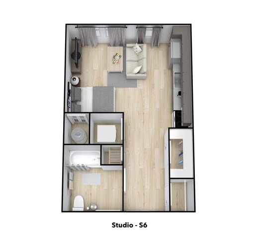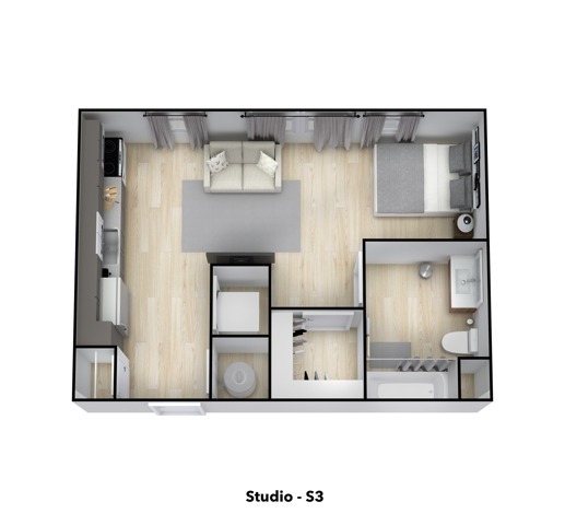 S4 - Floorplan 1 Apartment Unit: 1-413Apartment Model: S4$2,375Studio, 1 Bath, 465 sq ftAvailable NowFloorplan S3