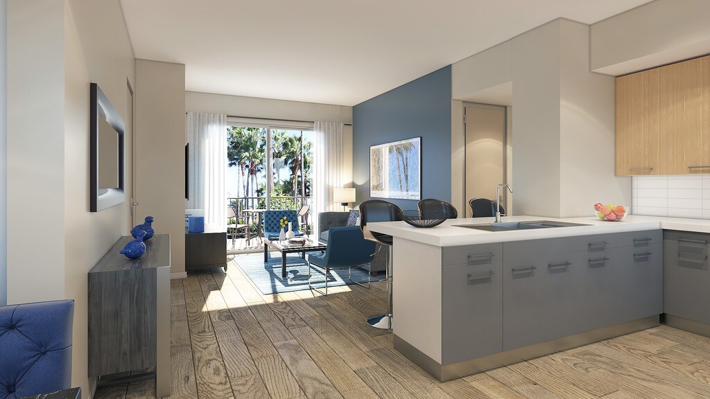 ** OPEN FOR TOURS, MAKE AN APPOINTMENT TODAY * * * on select units. INclave is a dynamic mixed-use development in the Marina Arts District of Marina del Rey, California. Located at 4065 Glencoe Avenue, INclave defines lives-work-play space, where healthy living and working promotes creativity and a productive, happy life. Developed by Steaven Jones Development Company and Creative Office Properties, the project comprises 'NOUN', a craft coffee roaster from Venice Beach, CA, 65,000 sq. ft. of state-of-the-art creative office space and 49 luxury Studio, 1 Bedroom, and 2 Bedroom apartment units in an exciting campus environment with many amenities. It also has 282 parking spacesfive surface spaces and 277 spaces in an automated parking structure designed by AutoParkIt. INclave was designed by VTBS with modernist architecture incorporating classic lines and contemporary high end finishes. Its amenities include a large outdoor area (The Hub) with a pool and space adjacent to a covered pavilion with a fireplace, lounge area, restrooms and showers. There is a game area with bleachers, a BBQ area with community seating and a dog play area. INclave also features a community room, fully equipped gym and yoga/pilates studio and a business center. Adjacent to the residential units are a number of lounge areas, including terraces on the 3rd floor with a fire pit and on the 5th floor with an outdoor fireplace. A concierge is on-site to help with your daily needs. Come live the INclave experience!
