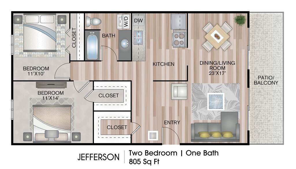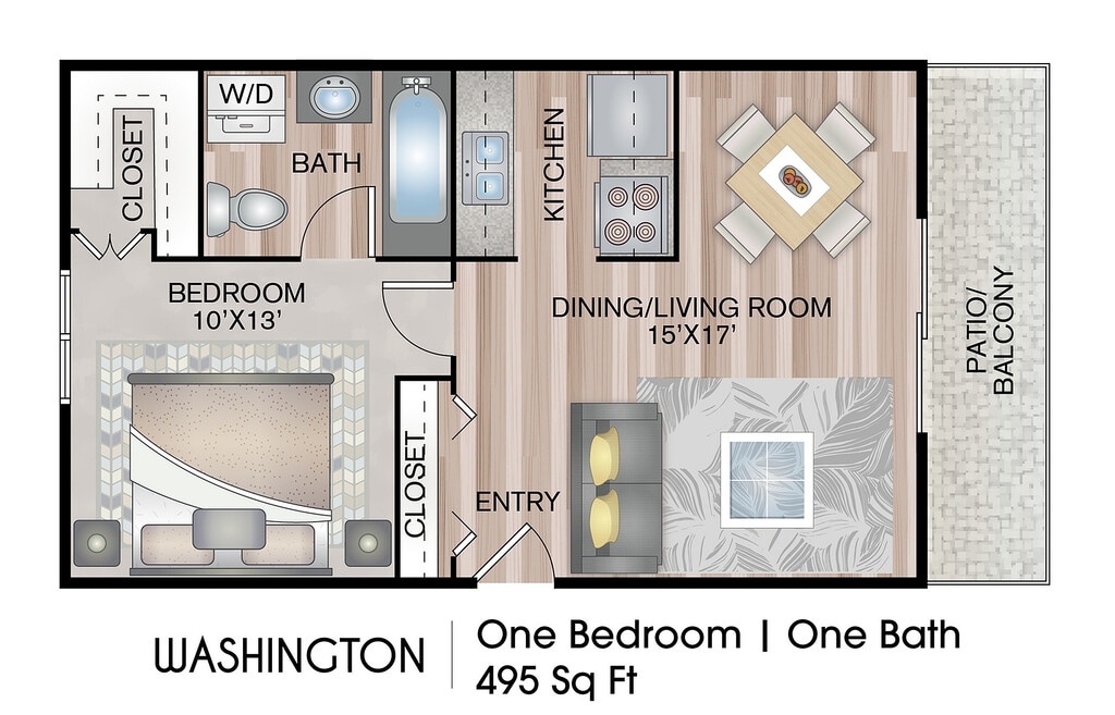 Apartment Model: Washington - Premium PlusFrom $9851 Bedroom, 1 Bath, 495 sq ftAvailable Now![]()