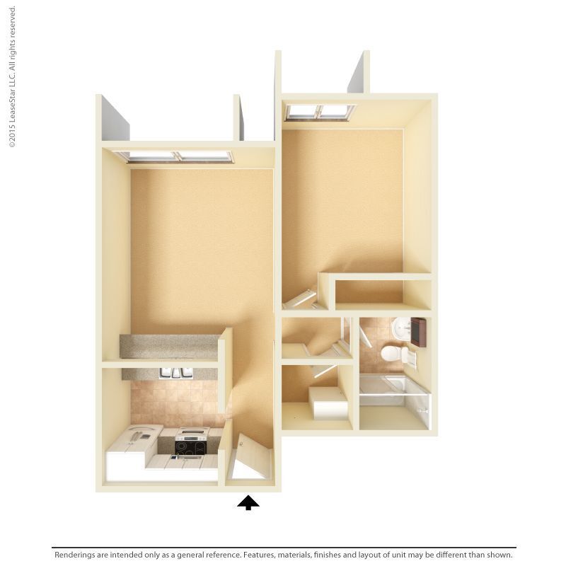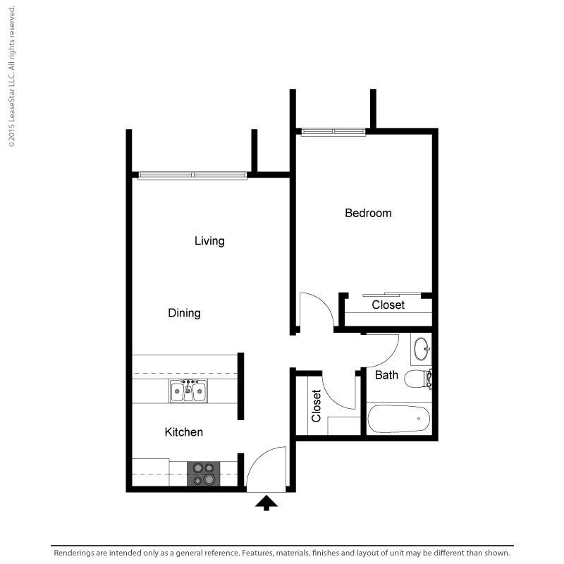 Apartment Model: Plan A & B$2,0101 Bedroom, 1 Bath, 550 sq ftAvailable NowFloor plans are artist's rendering. All dimensions are approximate. Actual product and specifications may vary in dimension or detail. Not all features are available in every rental home. Prices and availability are subject to change. Base rent is based on monthly frequency. Additional fees may apply, such as but not limited to package delivery, trash, water, amenities, etc. Deposits vary. Please see a representative for details.