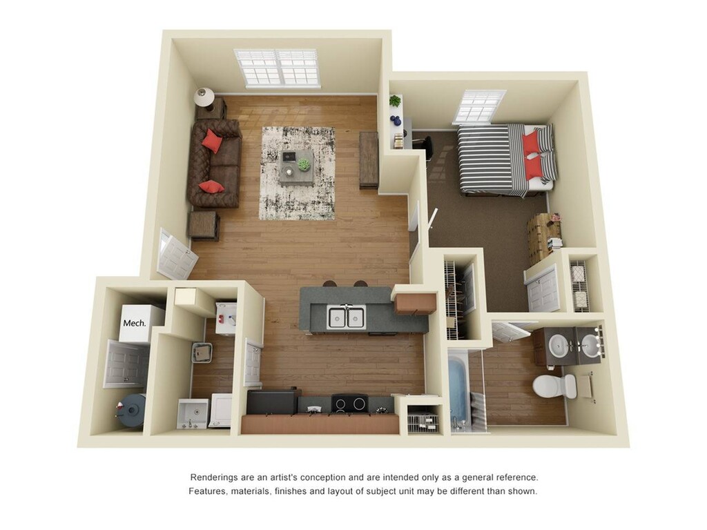 1 Bed, 1 Bath, 694 sq ftAvailable NowModel Gallery