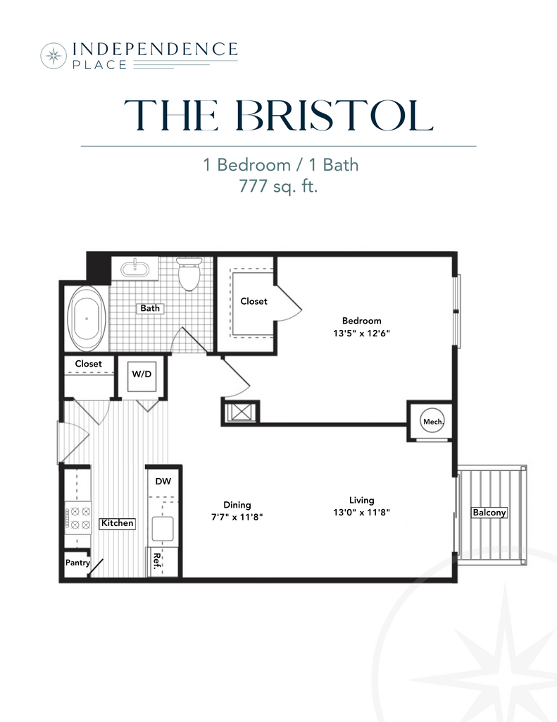Apartment Model: The Bristol1 Bedroom, 1 Bath, 777 sq ftUnavailable![]()
