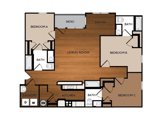 Apartment Model: 1BR1 Bedroom, 1 Bath, 725 sq ftAvailable Now![]()