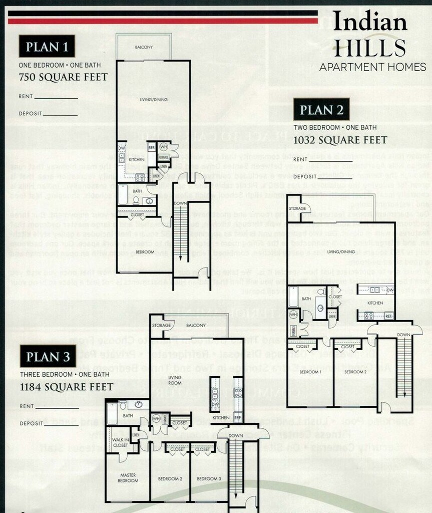 2 Bedroom to 3 Bedroom Apartments at Indian Hills currently range from $995 to $1,195