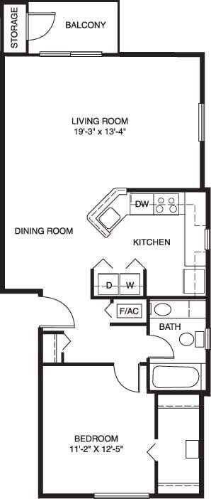 1 Bed, 1 Bath, 790-841 sq ftAvailable NowLargest 1 BedroomThis is the largest 1 Bedroom at this PropertyModel Gallery