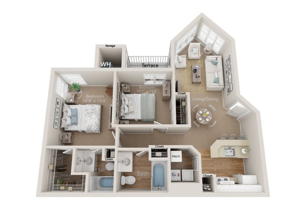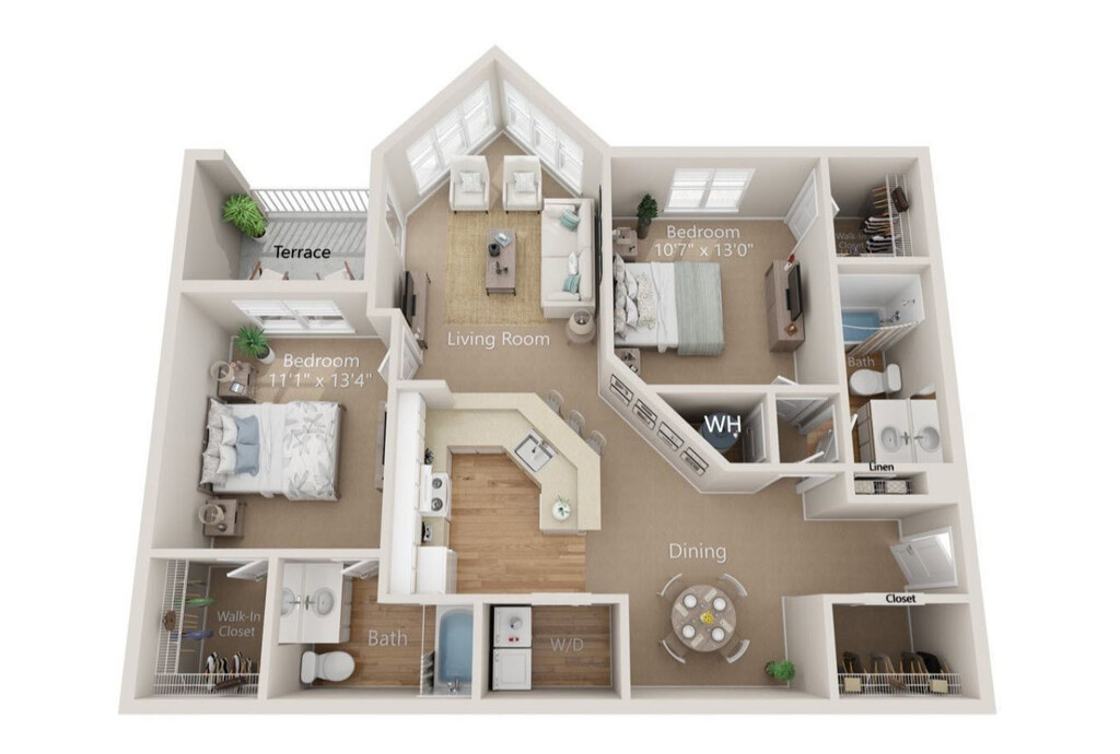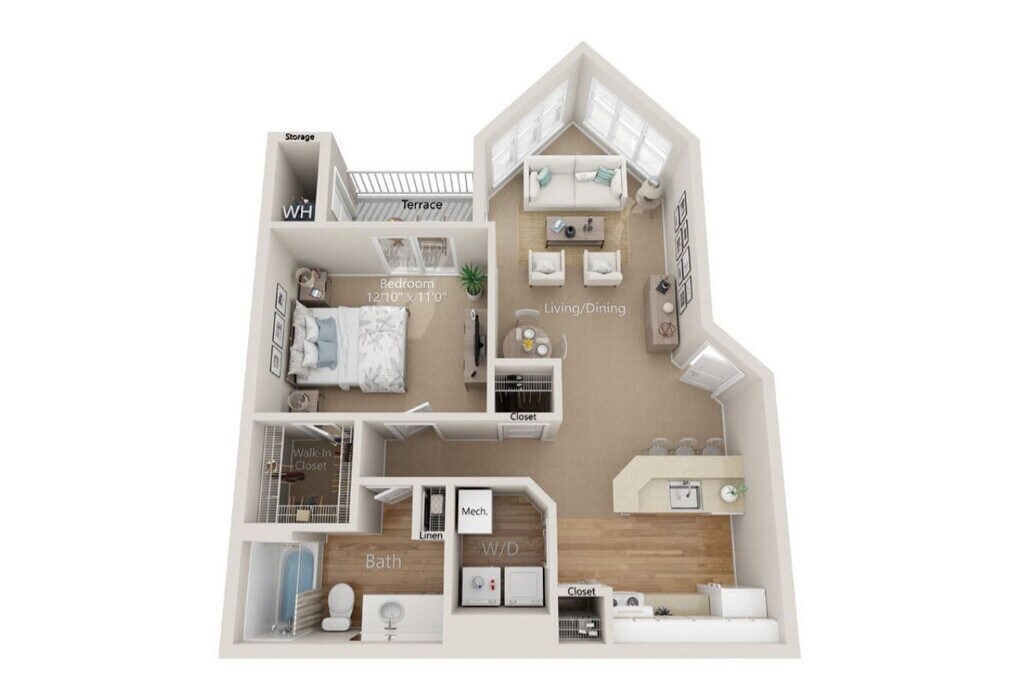 1 Bed, 1 Bath, 874 sq ftAvailable NowLargest 1 BedroomThis is the largest 1 Bedroom at this PropertyModel Gallery