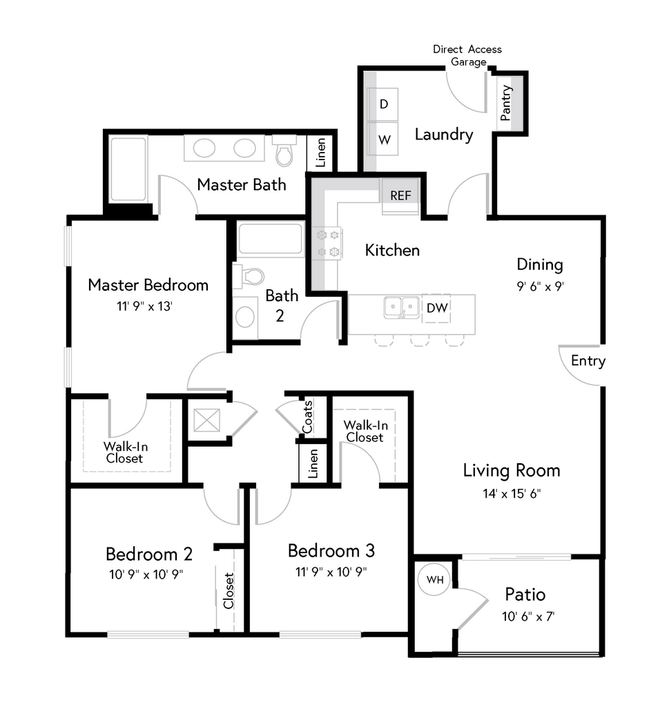 A3 - Floorplan 1 Apartment Unit: 3064Apartment Model: A3$2,1171 Bedroom, 1 Bath, 760 sq ftAvailable December 19, 20252 Bedrooms