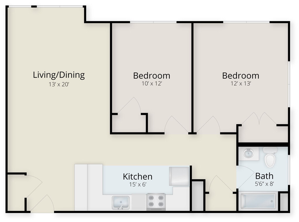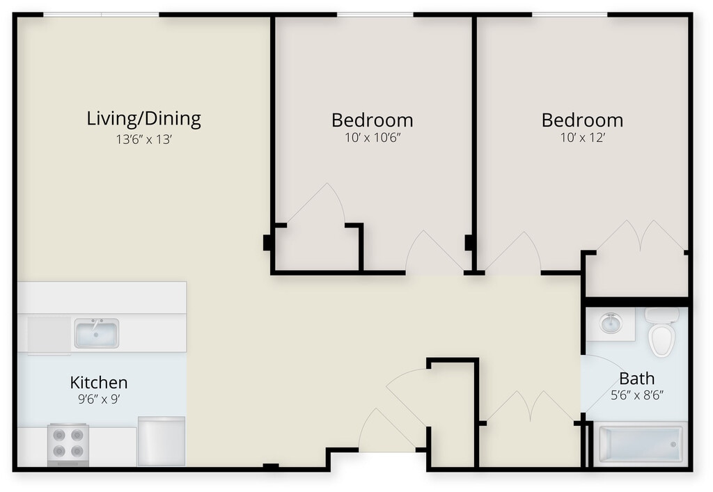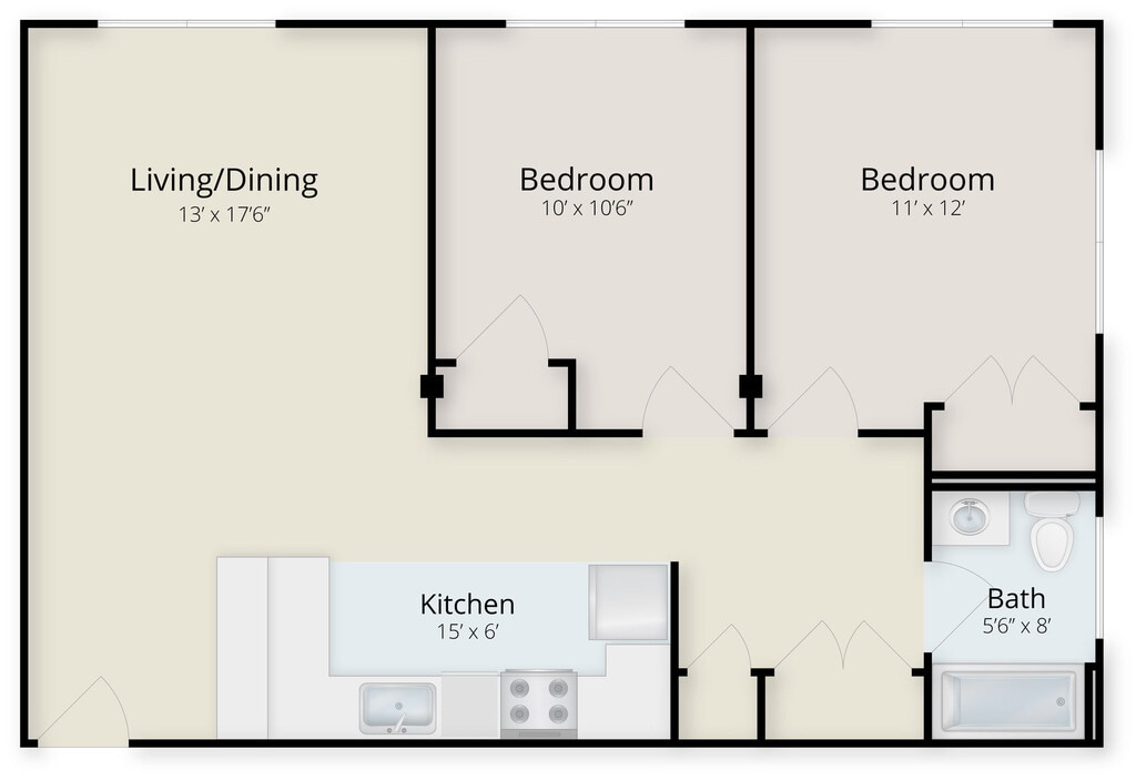 One Bedroom B - Floorplan 2 2 Bedrooms