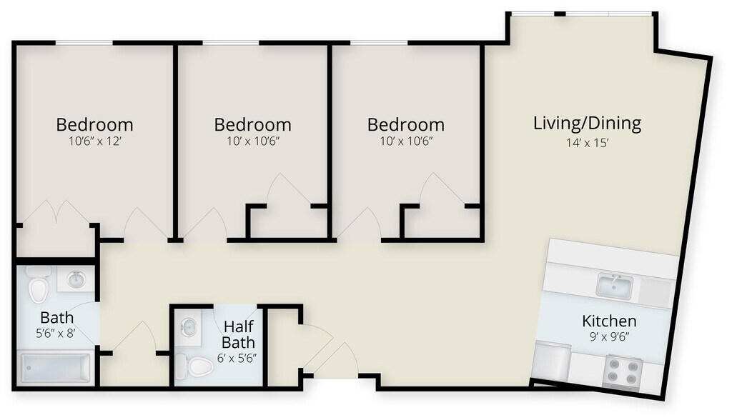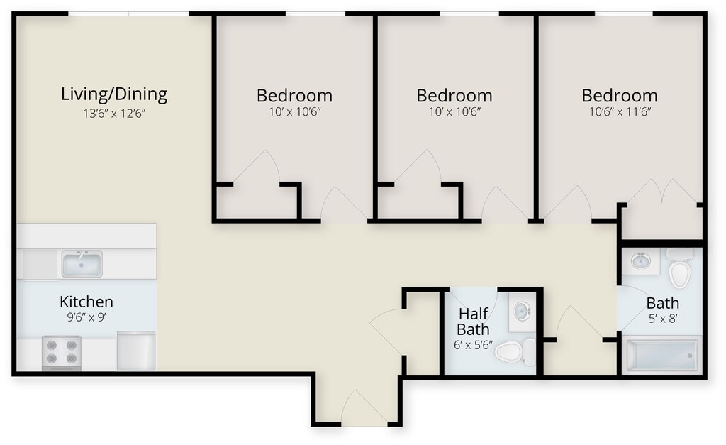 3 Beds, 1.5 Baths, 1019-1063 sq ftModel Gallery
