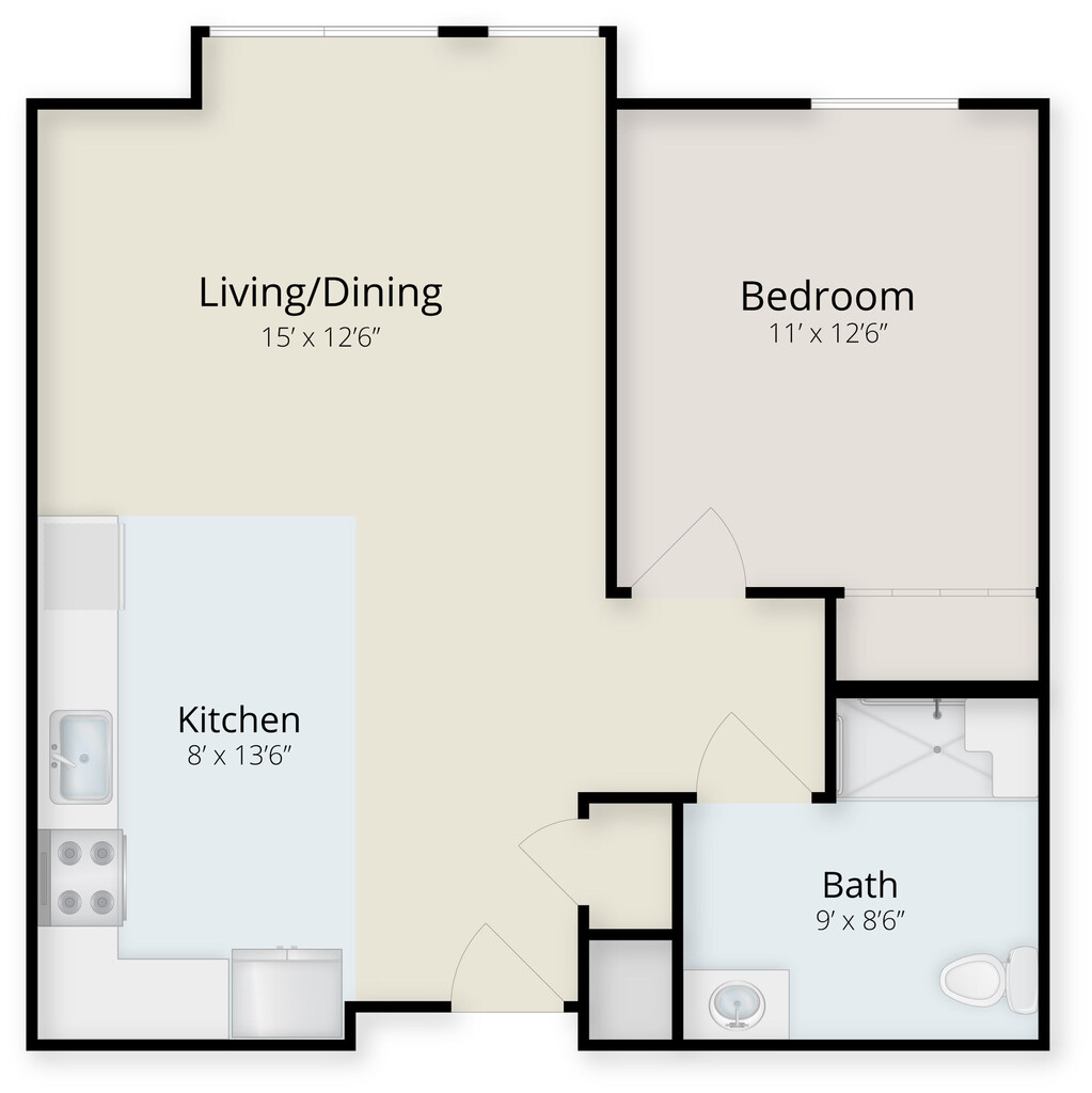 One Bedroom A - Floorplan 1 1 Bed, 1 bath