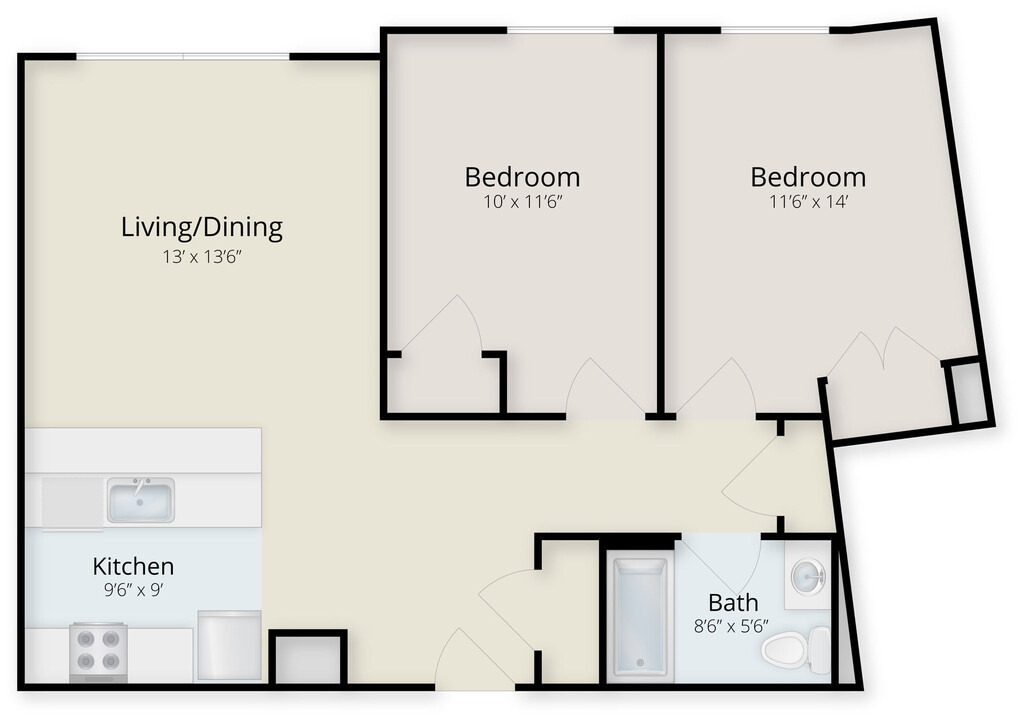 2 Beds, 1 Bath, 900 sq ftModel Gallery