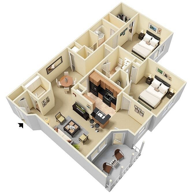 2 Beds, 2 Baths, 1073 sq ftAvailable NowCheapest 2 BedroomThis is the cheapest 2 Bedroom at this PropertyModel Gallery