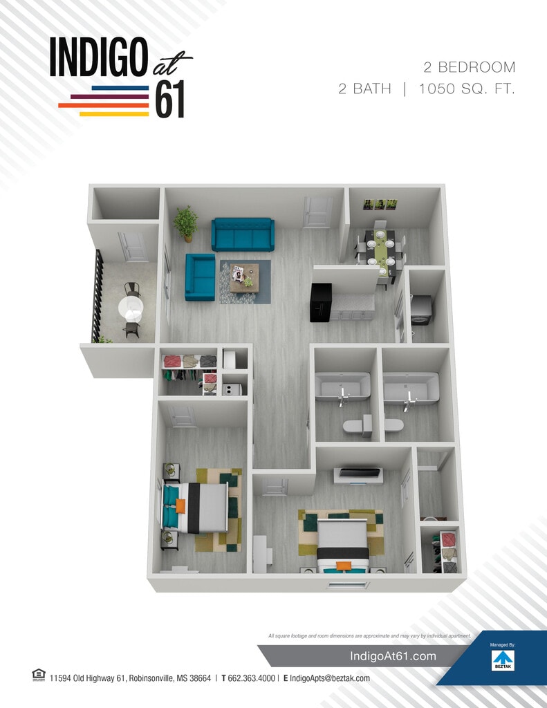 Indigo at 61 is located in the Robinsonville Tunica Neighborhood and 38664 Zip code of Robinsonville, MS. This community is professionally managed by BEZTAK Properties