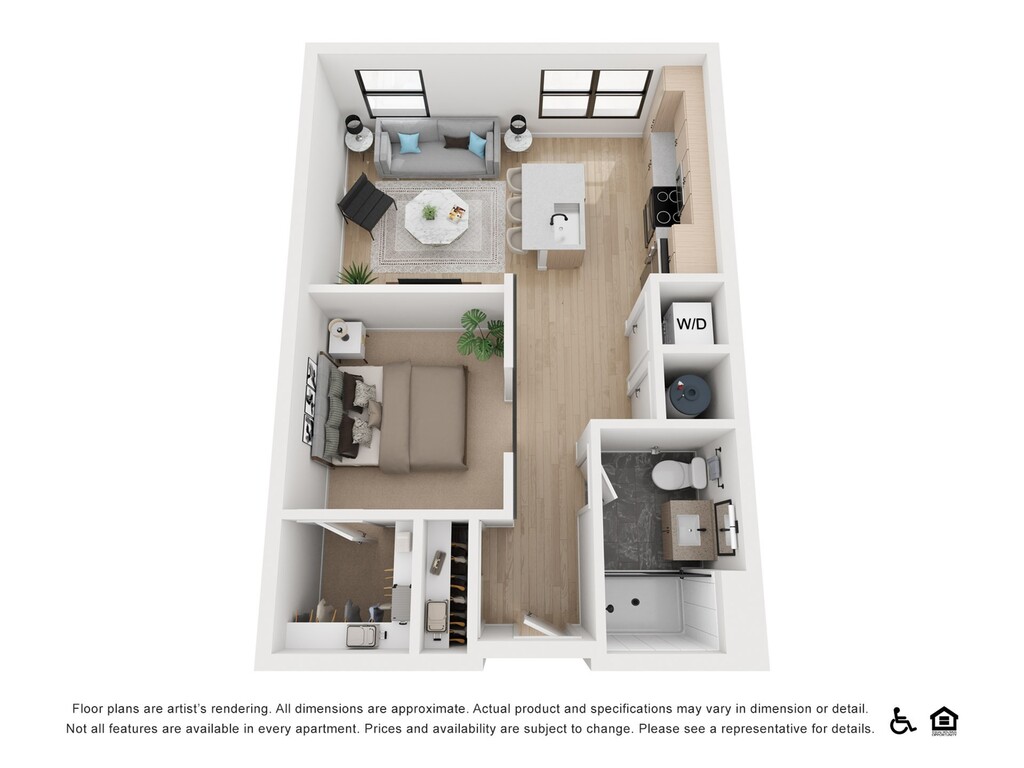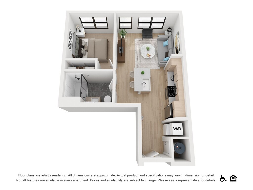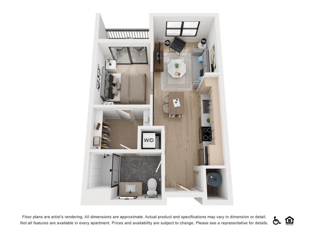 1 Bed, 1 Bath, 566 sq ftModel Gallery