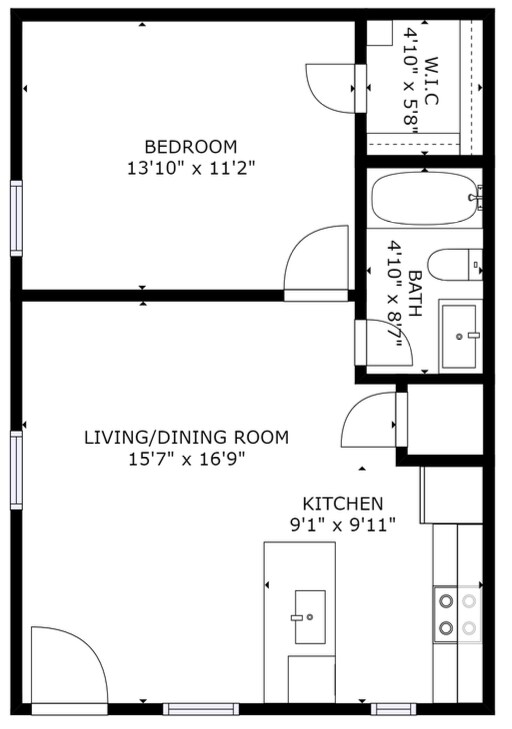 1 bed 1 bath - Floorplan 1 Apartment Unit: 205Apartment Model: 1 bed 1 bath$1,2501 Bedroom, 1 Bath, 700 sq ftAvailable Now1 bed 1 bath