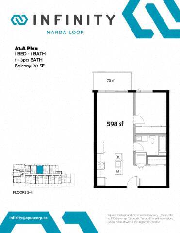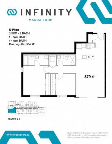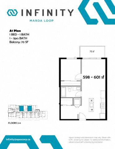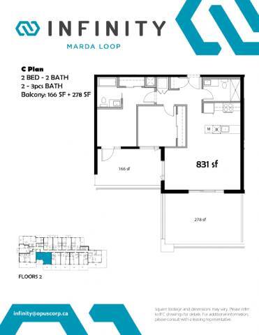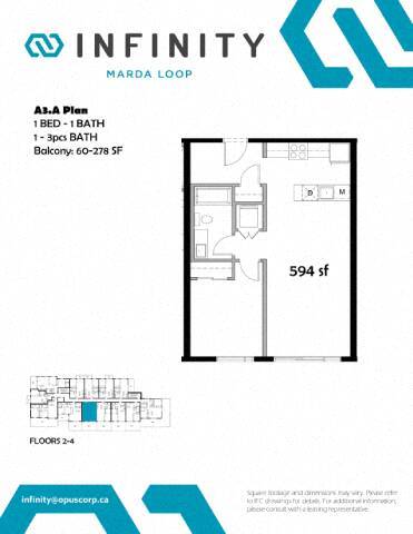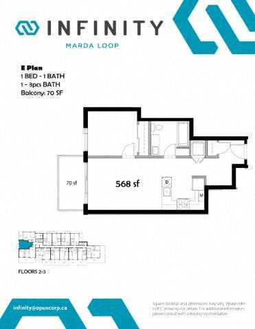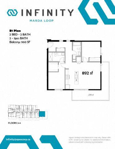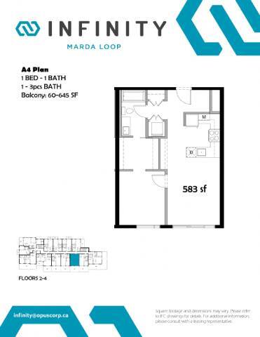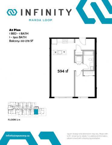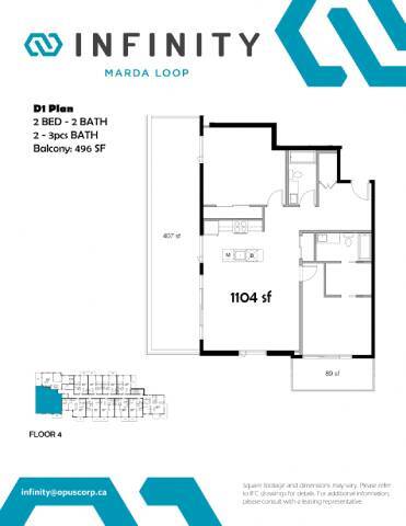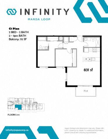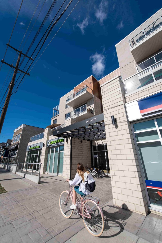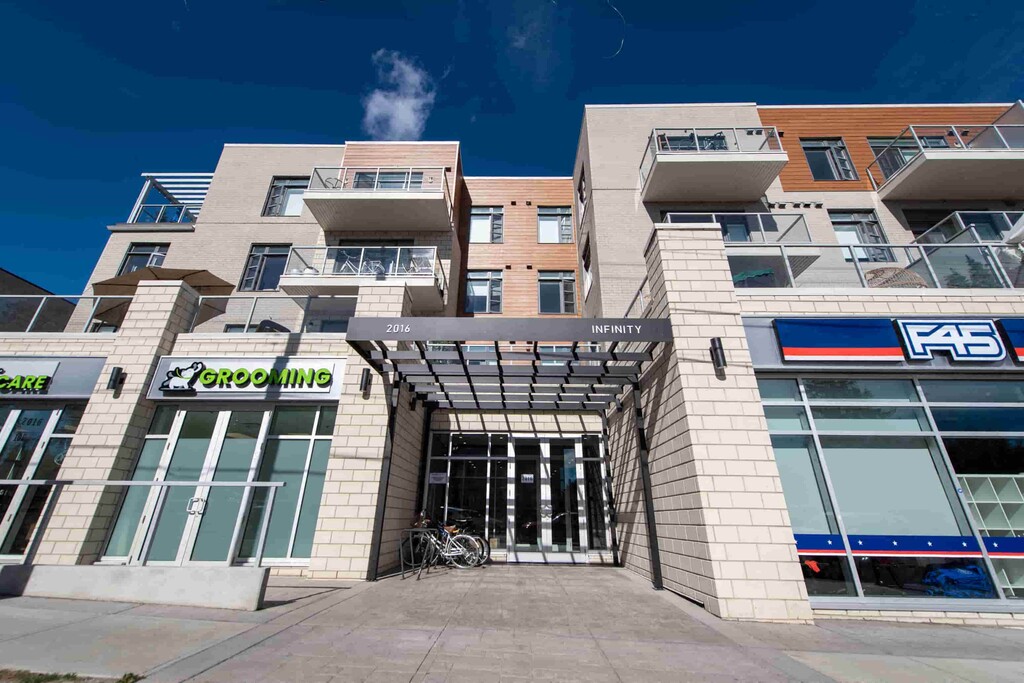 INFINITY @ MARDA LOOP presents a harmonious blend of chic comfort, avant-garde style, and a remarkable range of features.It is comprised of 38 elegantly designed residential units (1-BR units + 2-BR units).Class A Retail on the Ground Floor Includes Fitness, Dining, and a Bakery.These fantastic units include:Oversized terraces with bbq gas line so you can enjoy the fresh air from the privacy of your own home;Energy Star rated appliances - dishwasher, microwave, oven range & refrigerator in contemporary stainless steel;Quartz countertops in kitchen & bathrooms;In-door radiant heating;En-suite washer & dryer;9-foot ceilings & enormous window banks provide natural light-filled homes;Abundant closet space;8-foot high doors throughout to lend grandeur to your living space;Bicycle storage and storage lockers available.Pet FriendlyInfinity Website: property is managed by OPUS Corporation visit opuscorp.ca for more information.