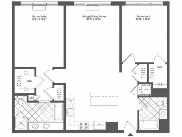H2 - Floorplan 1 Apartment Unit: 414Apartment Model: H2$3,9502 Bedroom, 2 Bath, 1285 sq ftAvailable Now![]()