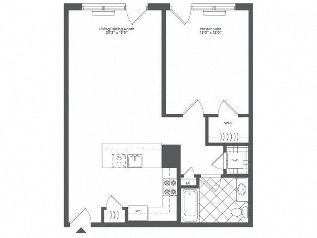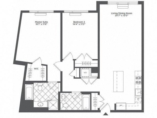 E - Floorplan 1 Apartment Unit: 405Apartment Model: E$3,3002 Bedroom, 2 Bath, 1198 sq ftAvailable Now![]()