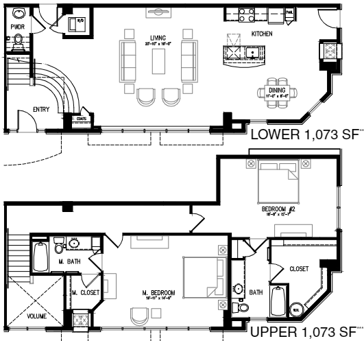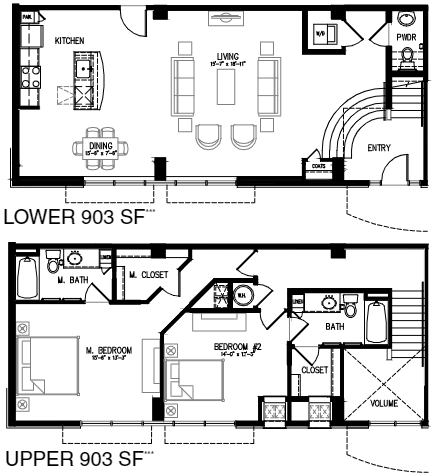 1 Bed, 1 Bath, 827 sq ftModel Gallery