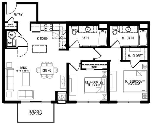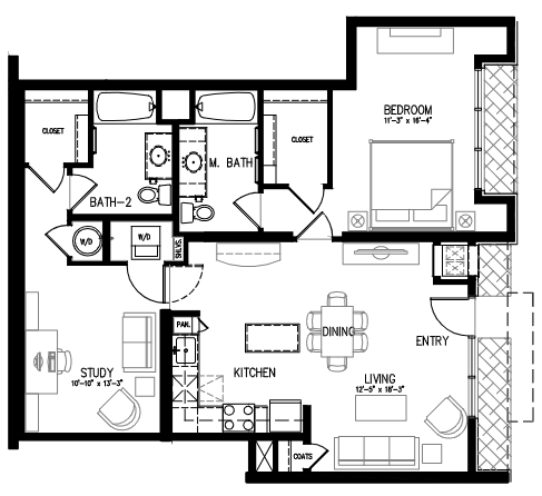 1 Bed, 1 Bath, 970 sq ftModel Gallery