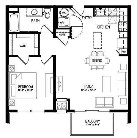 1 Bed, 1 Bath, 744 sq ftModel Gallery