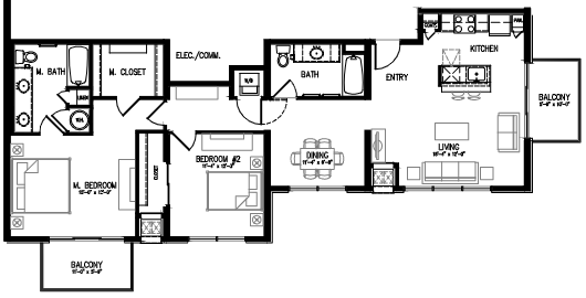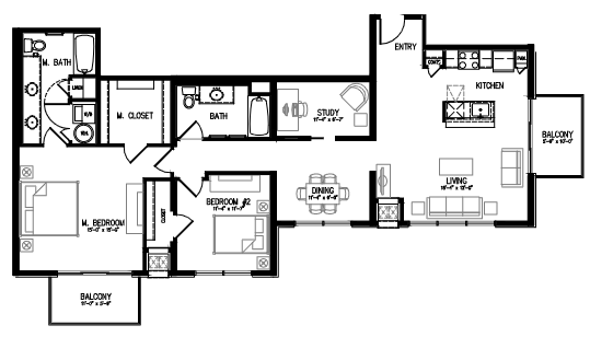 Apartment Model: A6From $3,1301 Bedroom, 1 Bath, 970 sq ftUnavailable![]()