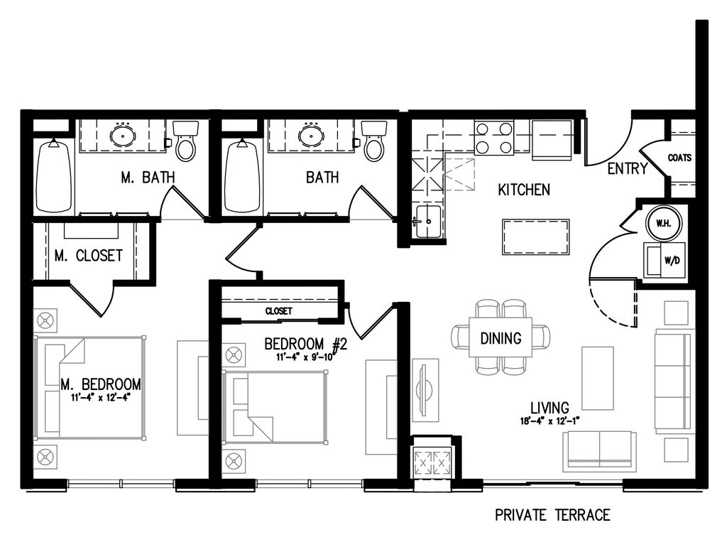 1 Bed, 2 Baths, 1245 sq ftLargest 1 BedroomThis is the largest 1 Bedroom at this PropertyModel Gallery