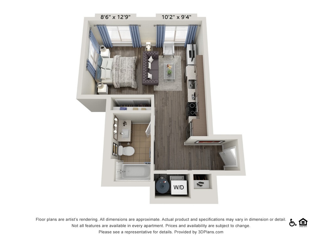 Studio, 1 Bath, 588 sq ftAvailable NowModel Gallery