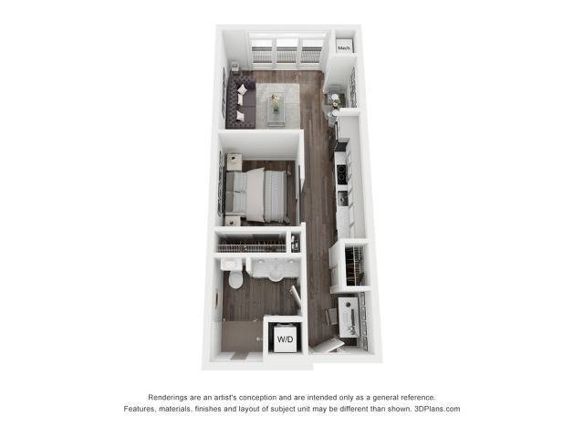 Studio, 1 Bath, 543 sq ftAvailable January 10, 2026Largest StudioThis is the largest Studio at this PropertyModel Gallery