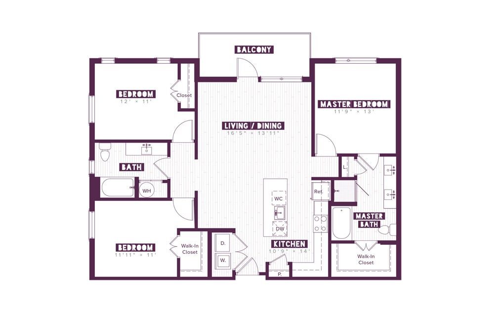 1 Bed, 1 Bath, 708 sq ftAvailable NowModel Gallery